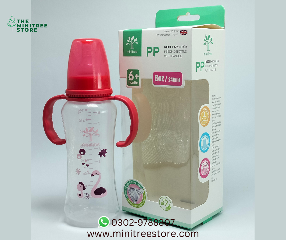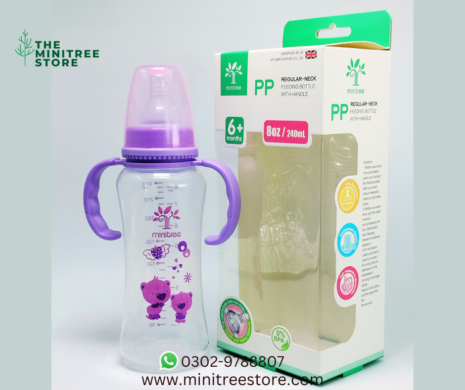 Make feeding time easy, safe, and fun with the Minitree PP Baby Feeding Bottle with Handles (240ml)! Designed with bright colors and adorable animal prints, this bottle keeps your little one happy while ensuring a smooth feeding experience.